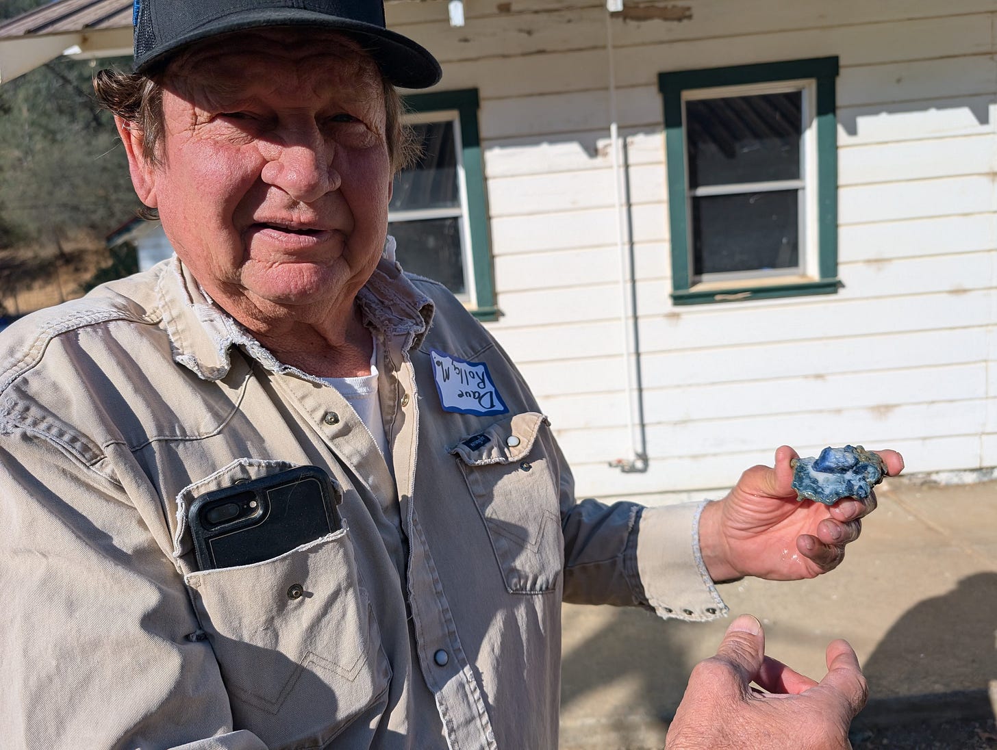 Dave Schreiner’s son John was in high school when his father purchased the Benitoite Gem Mine. Knowing that they didn’t have the manpower to work the mine full time, Dave Schreiner decided to offer a “fee digging” operation. Members of the public could pay to sift through the benitoite-rich dirt outside of the mine and keep what they found.